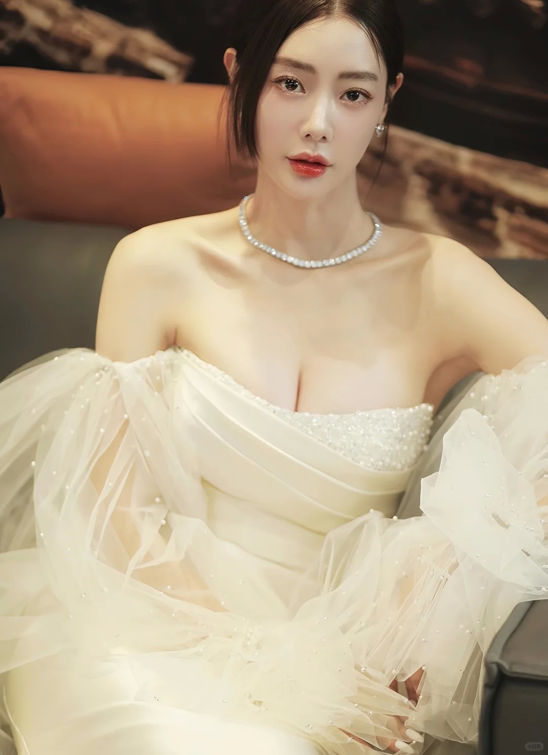 当然,克拉拉在时尚与经典造型上的表现力同样无可挑剔。她能完美驾驭诸如蓝黑色刺绣短旗袍这样的服饰,将其穿出既古典又时髦的风情。她也曾以一袭微透的蕾丝鱼尾裙亮相,完美的S型曲线在若隐若现的面料下展现得淋漓尽致,冷艳高贵,宛如人鱼公主。而一套简洁的白色深V西装长裙,又能让她瞬间切换成干练又性感的“财阀千金”风格,展现其可塑性与强大的气场。每一种造型,都是她作为演员和时尚偶像不同侧面的精彩表达。